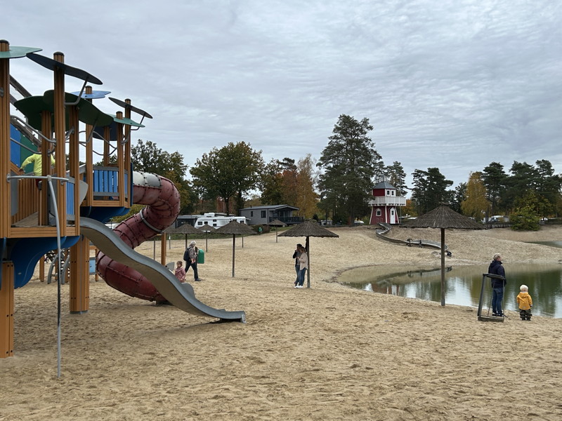 Im Oktober hatten wir dann einen Stellplatz im Sommerland, da unser Sohn mit Enkeln in einem Chalet in der Nähe im Sommarby wohnte. Die Auswahl erfolgte telefonisch durch einen Mitarbeiter des Platzes. Der Stellplatz war sehr groß und es hätten locker 3 Wohnmobile drauf gepasst. Wie im April waren das Wellenhallenbad und das Piratennest für unsere Enkel Spitze. Und im Insel-Restaurant war man sogar in der Lage, glutenfreie Speisen anzubieten. Auch der kleine REWE-Nahkauf bot ein reichhaltiges Angebot inklusive glutunfreier Speisen. In einer kleinen Hütte wurden Speisen u.a. zum Grillen angeboten – in den Automaten waren jedoch keine Grillsachen sondern nur Süßigkeiten und andere Kleinteile. Die sanitären Anlagen waren trotz einigen Tagen Regen immer sauber.
