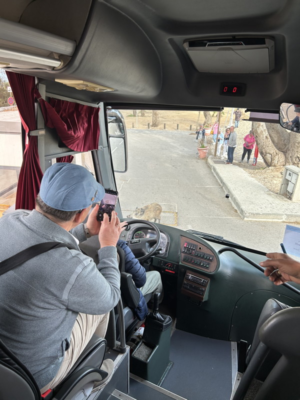 Kurz danach ging es schon weiter nach Tanger, wo wir das Cap Spartel anfuhren. Schon auf der Anfahrt hatte ich die Schilder mit dem Hinweis Wildschweine gesehen. Diese Tierchen waren so an die Menschen gewöhnt, dass sie sogar mit Nachwuchs nur 3-4 Meter an die Menschen herankamen. Und der Eber ließ den Bus nicht vom Parkplatz fahren. Er musste von dem Wächter erst mit einem kleinen Leckerbissen bestochen werden.