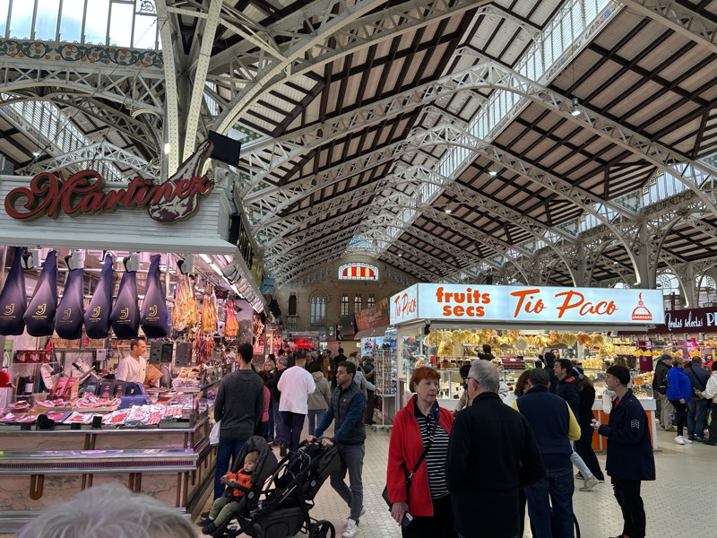 In Valencia waren wir von der Markthalle beeindruckt. Alle möglichen Speisen lagen relativ offen in den Auslagen. Interessant war auch die im Untergeschoss befindliche Toilette. Hier konnte man nicht mit Bargeld bezahlen, sondern benötigte entweder eine spezielle Münze oder konnte mit der Kreditkarte den Eintritt erhalten.